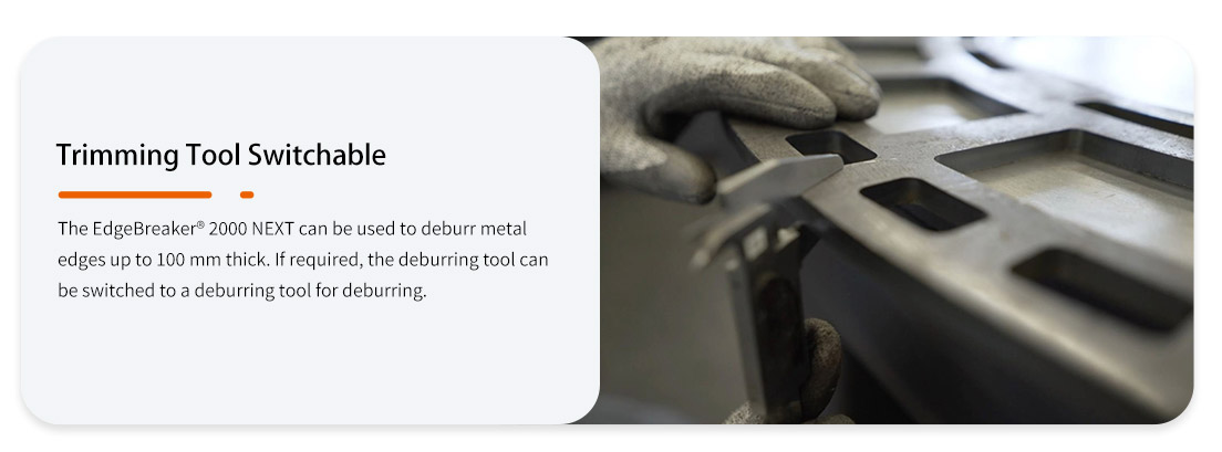 For consistent results, it is essential to always know where you stand. The EdgeBreaker® 2000 NEXT measures the remaining length of your tools (abrasives) within the machine and automatically compensates for the wear off.