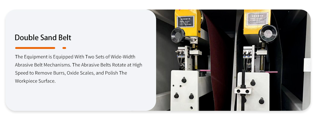 METAL DEBURRING, CHAMFERING AND DRAWING MACHINE The Equipment is Upgraded on the Conventional Basis, with Thickened and Eccentric Sand Rack Rollers and Overall Dynamic Balance. The Machine is Heavier And Thicker, With Lower Noise and Higher Stability. It Can Realize One-Pass Processing of Workpieces and is Suitable for Surface Pre-Grinding of Metal Plates, Deburring of Holes and Edges, As Well As Surface Wire Drawing and Descaling.